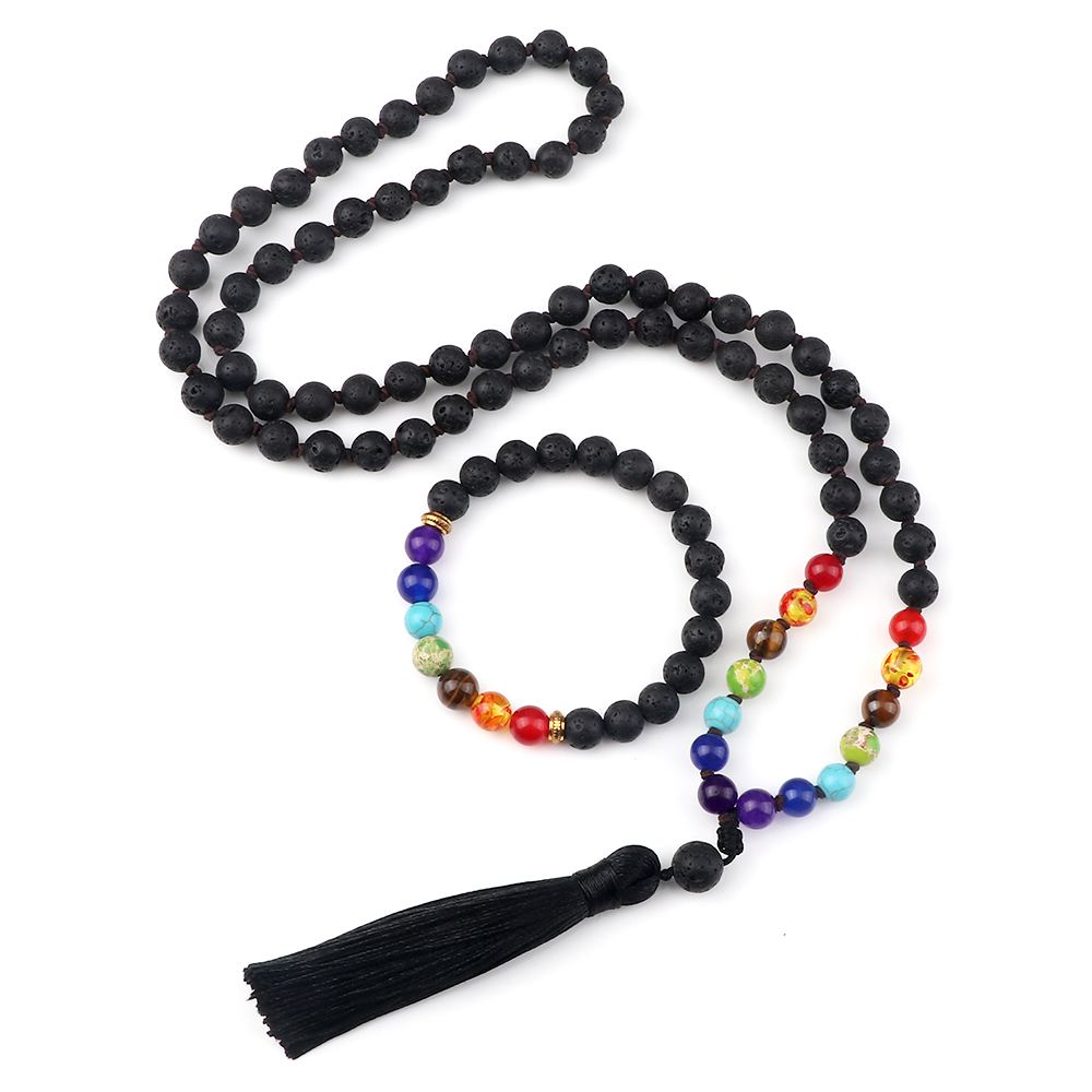 2pcs/set Men Black Onyx Beaded 7 Chakra Bracelets & Necklaces 8mm Natural Black Lava Stone Mala Necklaces Women Jewelry Black Lava – Sumsfashion