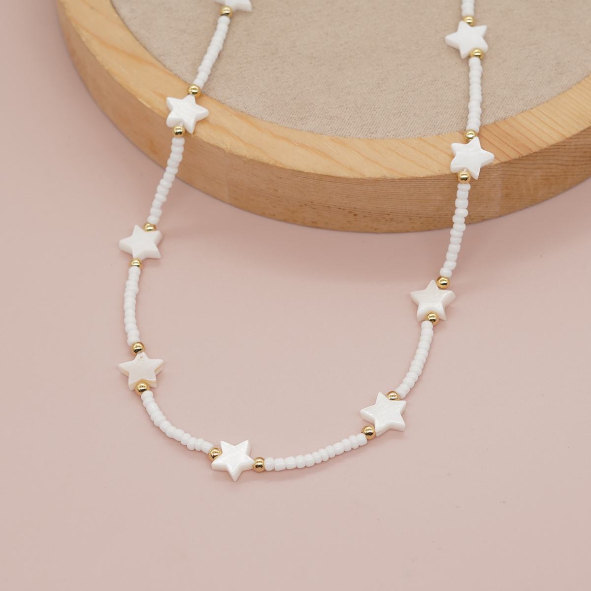 Go2boho White Seed Bead Shell Star Choker Gold Chain Necklaces For Women Summer Beach Minimalist Jewellry – Sumsfashion