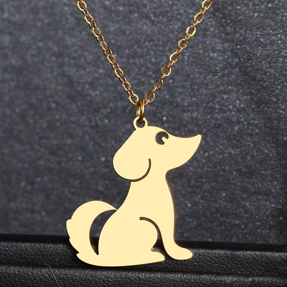 Stainless Steel Necklaces Animal Cute Dog Pendants Chain Choker Fine Charm Necklace For Women Jewelry Party Girls Gifts Gold Color-45cm – Sumsfashion