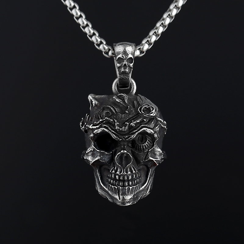 Vintage Hip-hop Punk Stainless Steel Skull Necklaces for Women Men Rock Cool Domineering Skeleton Pendant Necklace Boho Jewelry Skull pendant-Pendant With A Chain – Sumsfashion