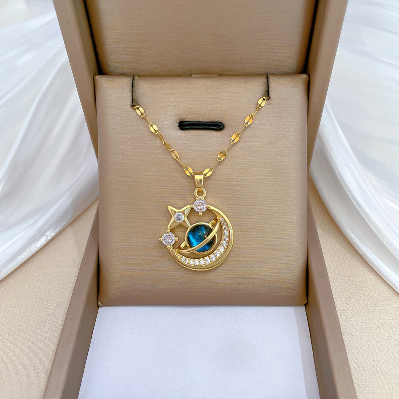 The Sumsfashion Starry Sky Planet Zircon Necklace is made of stainless steel. Stainless steel is generally durable and doesn't tarnish easily. However, the zircon stones are the part you need to watch. Cheaper zircon settings *can* be fragile. Don't expect diamond-level durability at this price point. Handle with care, and avoid wearing during activities that could damage the necklace.